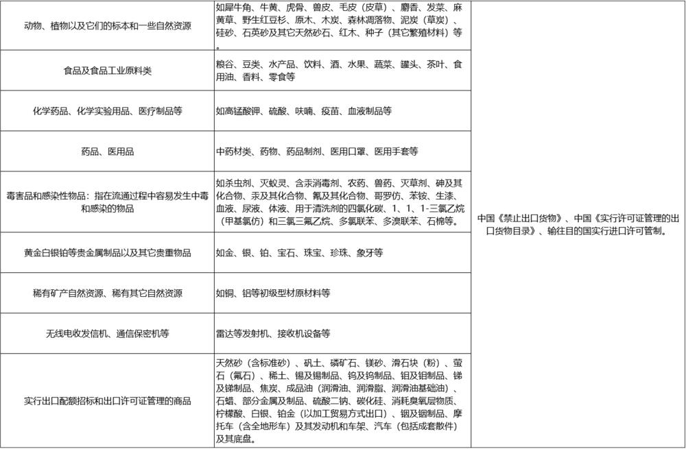 (1)中华人民共和国法律法规禁止或限制流通、寄递或出口的物品;